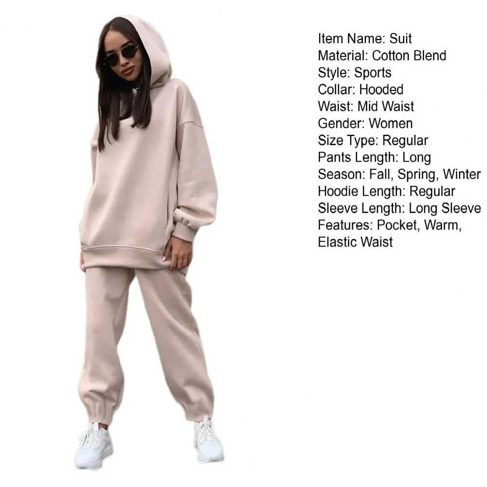 2 Pcs/Set Stylish Two Pieces Set Women Autumn Tracksuit Elastic Waist Long Sleeves Casual Autumn Tracksuit Thermal