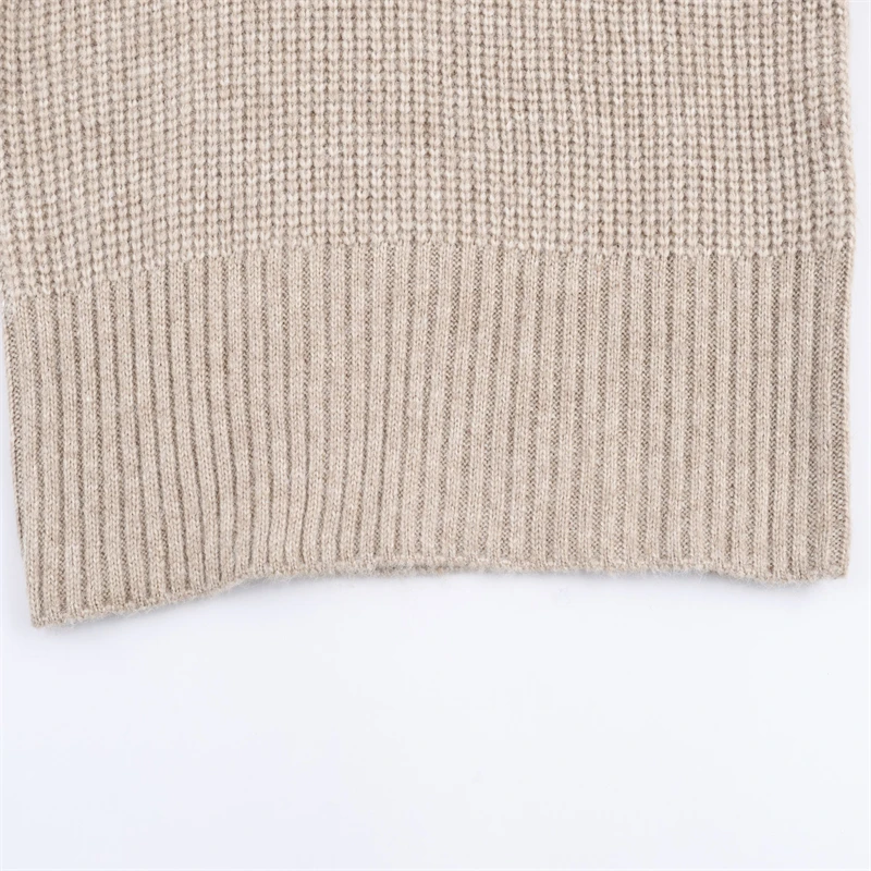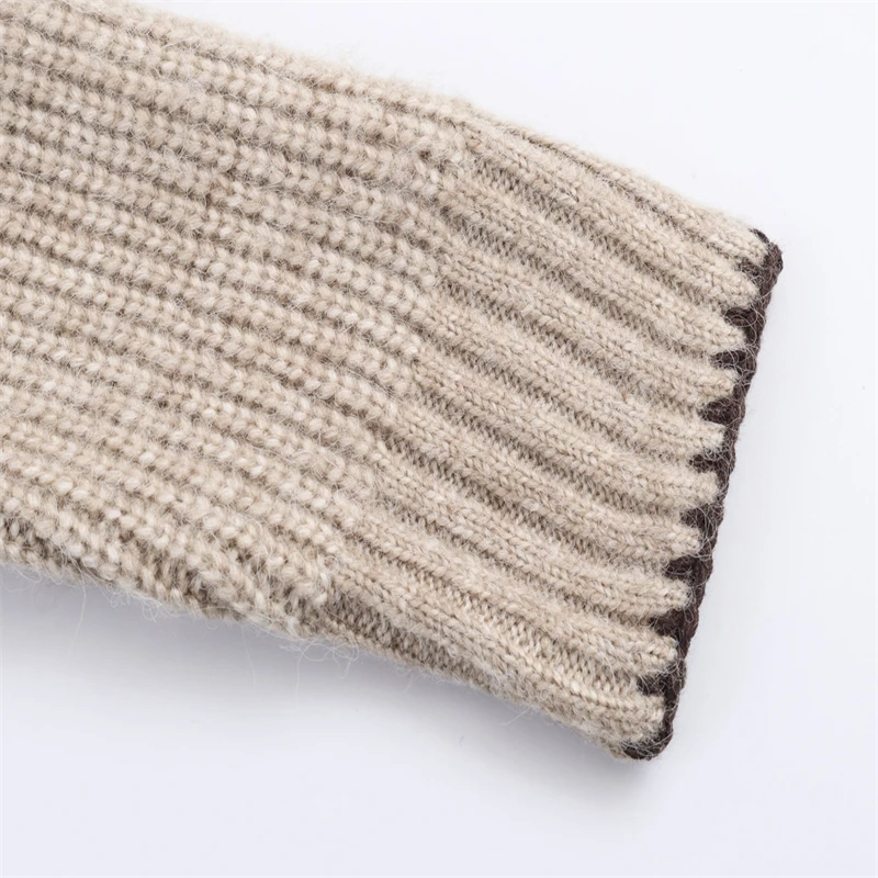 Women's navy and khaki knitted sweater, color-block scarf collar, long-sleeve cropped ribbed knit top, stylish autumn and winter